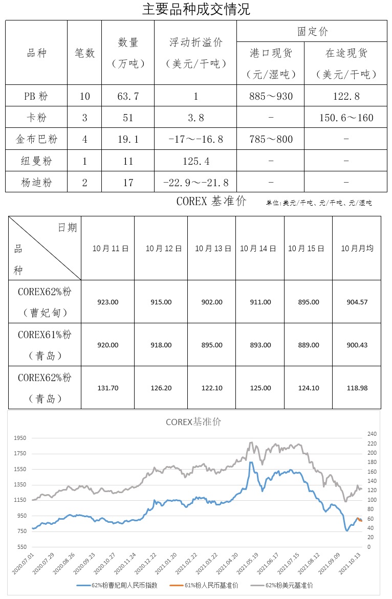 10月11日-10月15日成交30筆共192.26萬噸,其中在途13筆175萬噸,港口17筆17.26萬